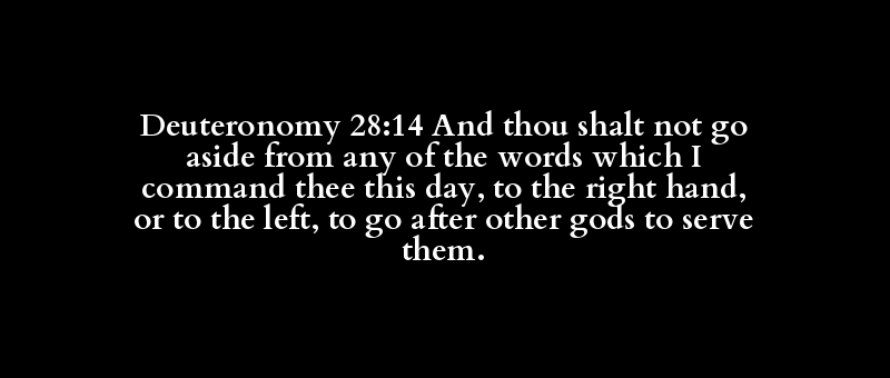 Deuteronomy 28:14 And thou shalt not go aside from any of the words which I command thee this day, to the right hand, or to the left, to go after other gods to serve them.