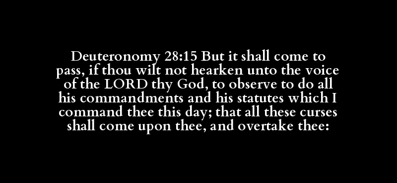 Deuteronomy 28:15 But it shall come to pass, if thou wilt not hearken unto the voice of the LORD thy God, to observe to do all his commandments and his statutes which I command thee this day; that all these curses shall come upon thee, and overtake thee: