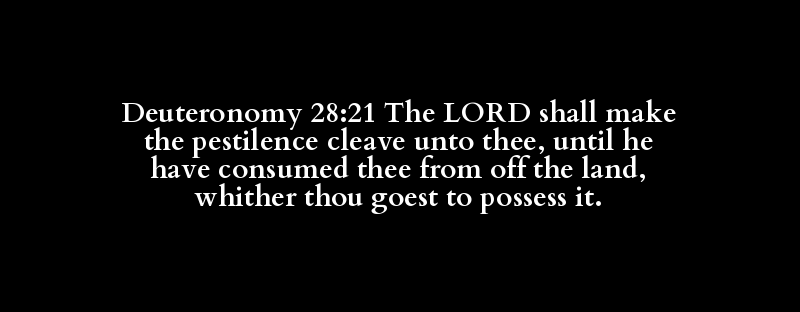 Deuteronomy 28:21 The LORD shall make the pestilence cleave unto thee, until he have consumed thee from off the land, whither thou goest to possess it.