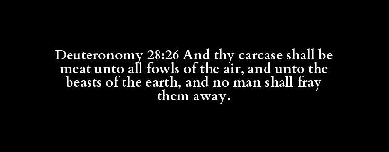 Deuteronomy 28:26 And thy carcase shall be meat unto all fowls of the air, and unto the beasts of the earth, and no man shall fray them away.