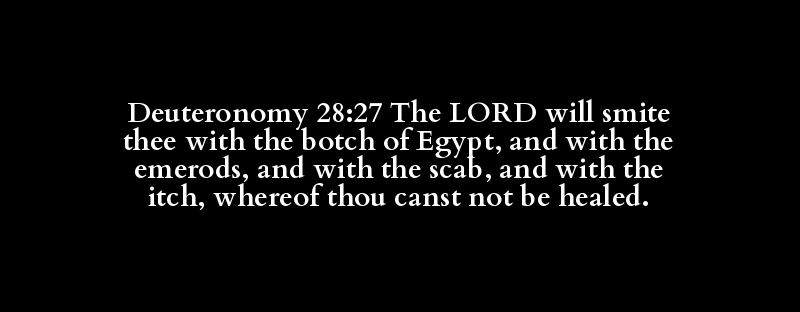 Deuteronomy 28:27 The LORD will smite thee with the botch of Egypt, and with the emerods, and with the scab, and with the itch, whereof thou canst not be healed.