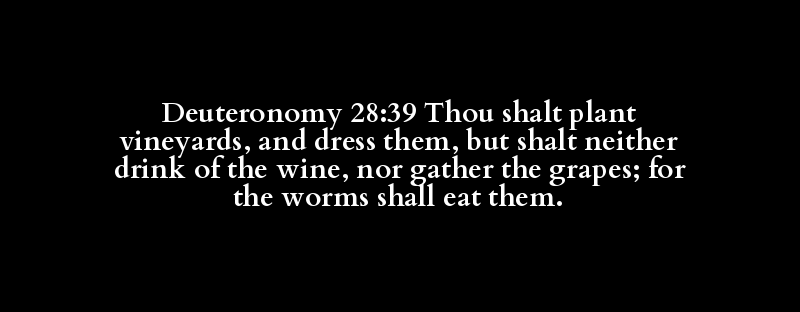 Deuteronomy 28:39 Thou shalt plant vineyards, and dress them, but shalt neither drink of the wine, nor gather the grapes; for the worms shall eat them.