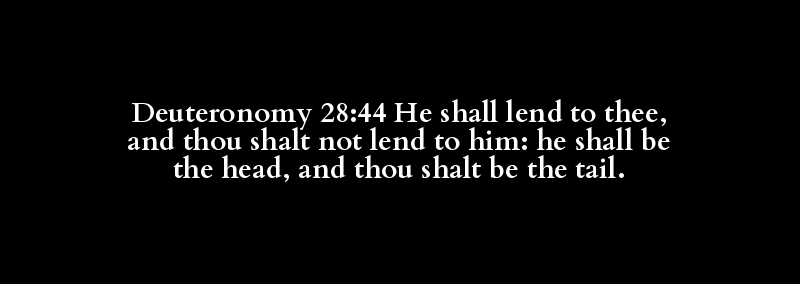 Deuteronomy 28:44 He shall lend to thee, and thou shalt not lend to him: he shall be the head, and thou shalt be the tail.