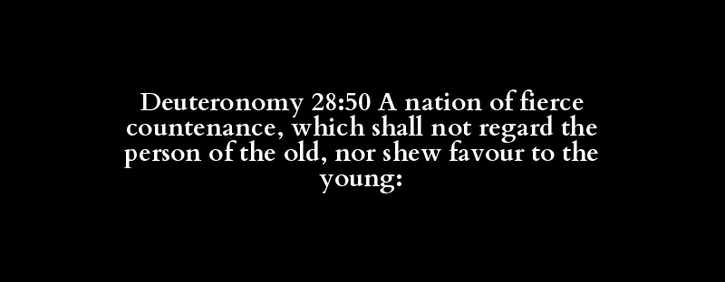 Deuteronomy 28:50 A nation of fierce countenance, which shall not regard the person of the old, nor shew favour to the young: