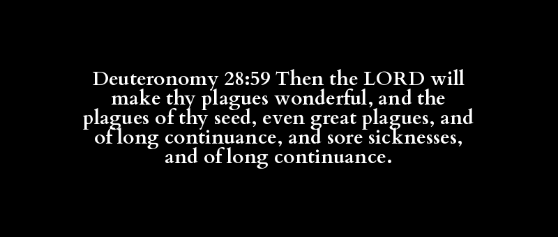 Deuteronomy 28:59 Then the LORD will make thy plagues wonderful, and the plagues of thy seed, even great plagues, and of long continuance, and sore sicknesses, and of long continuance.
