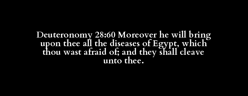 Deuteronomy 28:60 Moreover he will bring upon thee all the diseases of Egypt, which thou wast afraid of; and they shall cleave unto thee.