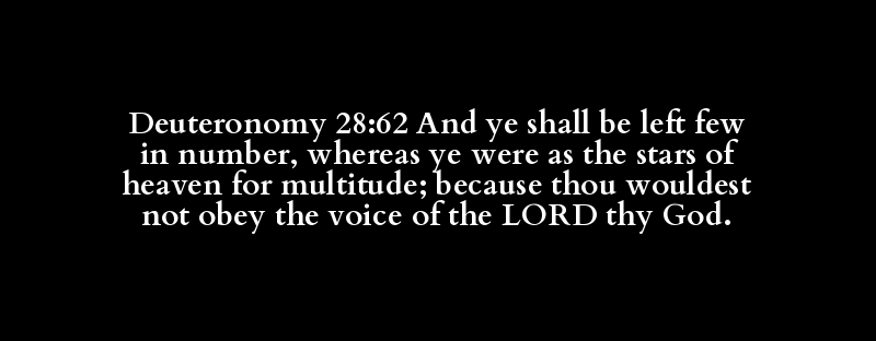 Deuteronomy 28:62 And ye shall be left few in number, whereas ye were as the stars of heaven for multitude; because thou wouldest not obey the voice of the LORD thy God.