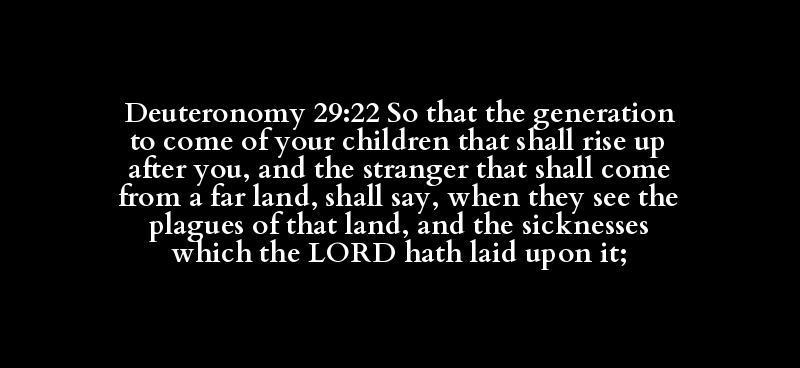 Deuteronomy 29:22 So that the generation to come of your children that shall rise up after you, and the stranger that shall come from a far land, shall say, when they see the plagues of that land, and the sicknesses which the LORD hath laid upon it;