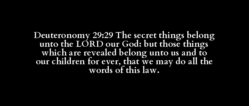 Deuteronomy 29:29 The secret things belong unto the LORD our God: but those things which are revealed belong unto us and to our children for ever, that we may do all the words of this law.