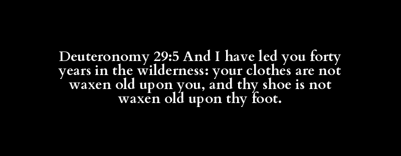 Deuteronomy 29:5 And I have led you forty years in the wilderness: your clothes are not waxen old upon you, and thy shoe is not waxen old upon thy foot.
