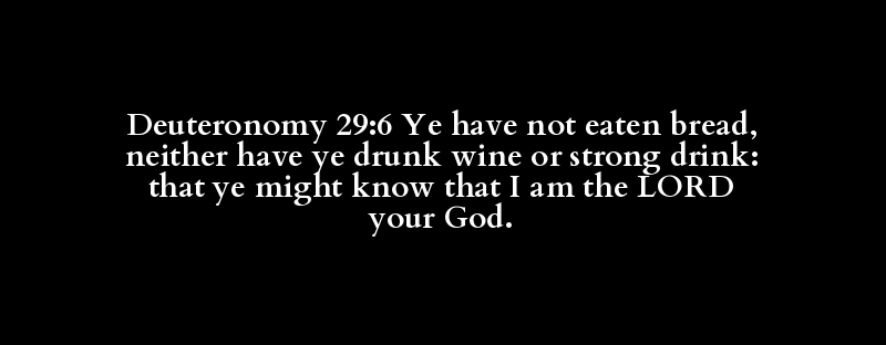 Deuteronomy 29:6 Ye have not eaten bread, neither have ye drunk wine or strong drink: that ye might know that I am the LORD your God.
