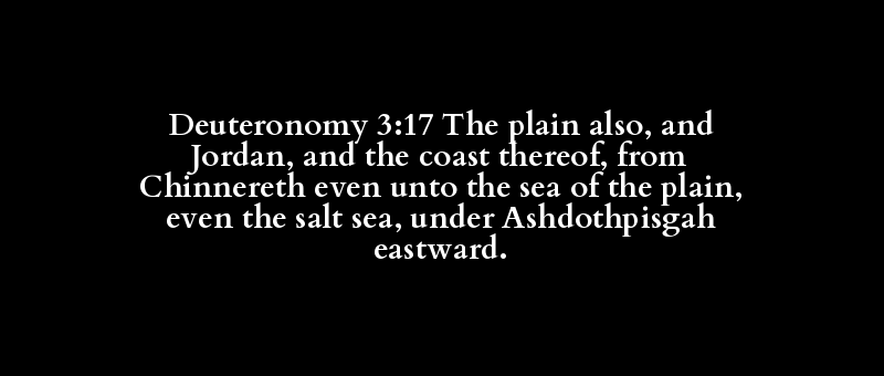 Deuteronomy 3:17 The plain also, and Jordan, and the coast thereof, from Chinnereth even unto the sea of the plain, even the salt sea, under Ashdothpisgah eastward.