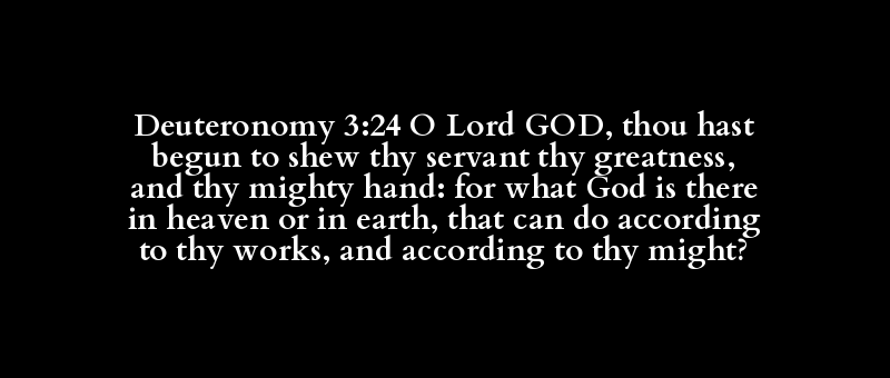 Deuteronomy 3:24 O Lord GOD, thou hast begun to shew thy servant thy greatness, and thy mighty hand: for what God is there in heaven or in earth, that can do according to thy works, and according to thy might?