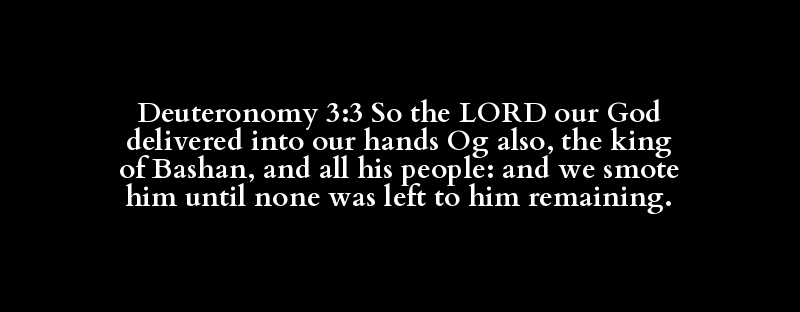 Deuteronomy 3:3 So the LORD our God delivered into our hands Og also, the king of Bashan, and all his people: and we smote him until none was left to him remaining.