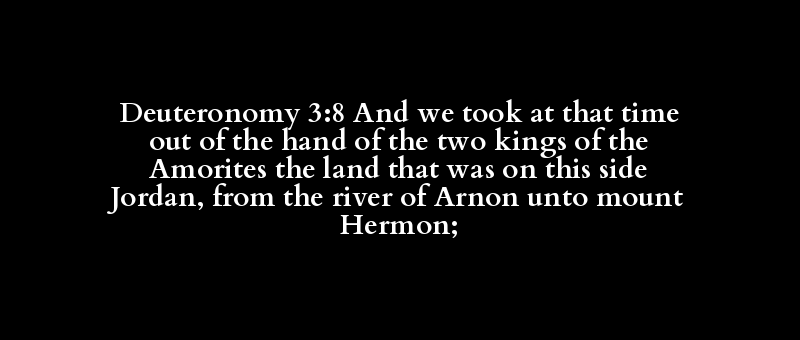Deuteronomy 3:8 And we took at that time out of the hand of the two kings of the Amorites the land that was on this side Jordan, from the river of Arnon unto mount Hermon;