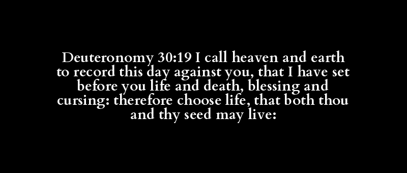 Deuteronomy 30:19 I call heaven and earth to record this day against you, that I have set before you life and death, blessing and cursing: therefore choose life, that both thou and thy seed may live: