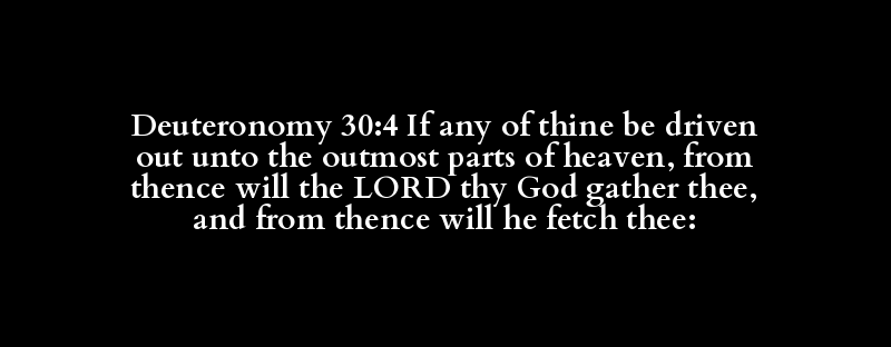 Deuteronomy 30:4 If any of thine be driven out unto the outmost parts of heaven, from thence will the LORD thy God gather thee, and from thence will he fetch thee: