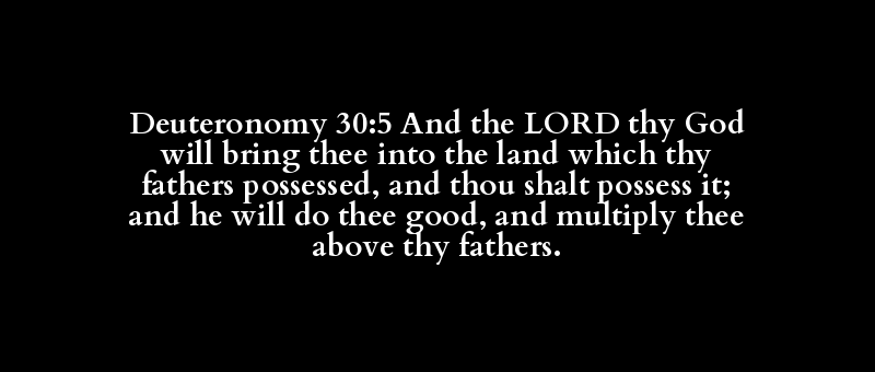 Deuteronomy 30:5 And the LORD thy God will bring thee into the land which thy fathers possessed, and thou shalt possess it; and he will do thee good, and multiply thee above thy fathers.