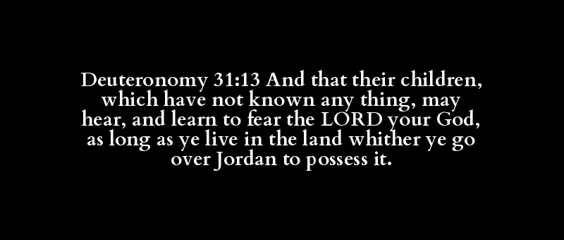 Deuteronomy 31:13 And that their children, which have not known any thing, may hear, and learn to fear the LORD your God, as long as ye live in the land whither ye go over Jordan to possess it.