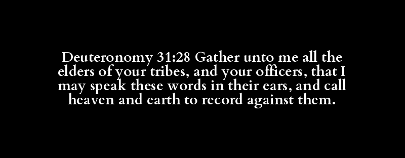 Deuteronomy 31:28 Gather unto me all the elders of your tribes, and your officers, that I may speak these words in their ears, and call heaven and earth to record against them.