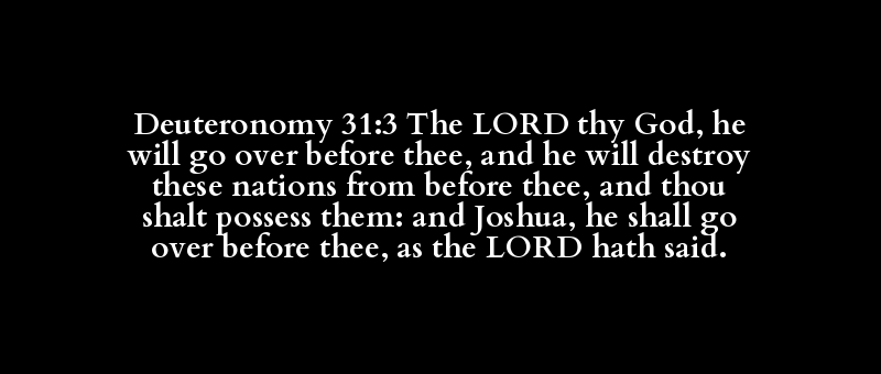 Deuteronomy 31:3 The LORD thy God, he will go over before thee, and he will destroy these nations from before thee, and thou shalt possess them: and Joshua, he shall go over before thee, as the LORD hath said.
