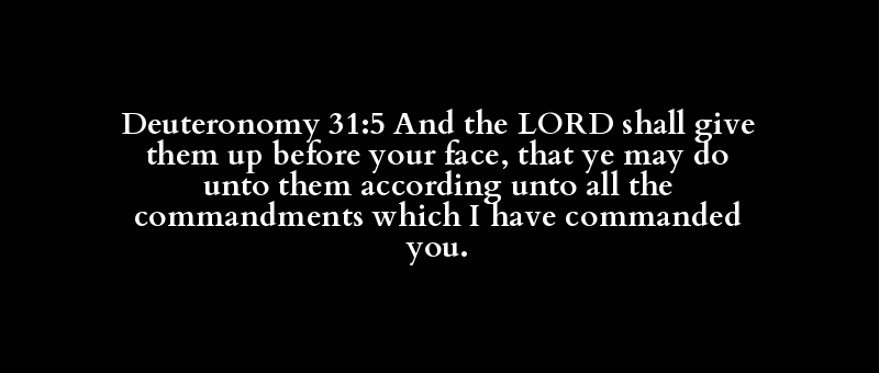 Deuteronomy 31:5 And the LORD shall give them up before your face, that ye may do unto them according unto all the commandments which I have commanded you.