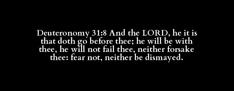 Deuteronomy 31:8 And the LORD, he it is that doth go before thee; he will be with thee, he will not fail thee, neither forsake thee: fear not, neither be dismayed.