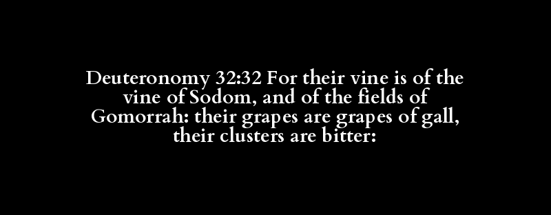 Deuteronomy 32:32 For their vine is of the vine of Sodom, and of the fields of Gomorrah: their grapes are grapes of gall, their clusters are bitter: