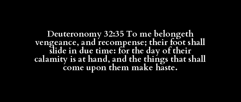 Deuteronomy 32:35 To me belongeth vengeance, and recompense; their foot shall slide in due time: for the day of their calamity is at hand, and the things that shall come upon them make haste.