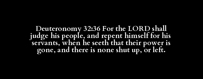 Deuteronomy 32:36 For the LORD shall judge his people, and repent himself for his servants, when he seeth that their power is gone, and there is none shut up, or left.