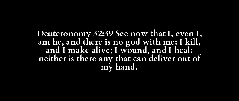Deuteronomy 32:39 See now that I, even I, am he, and there is no god with me: I kill, and I make alive; I wound, and I heal: neither is there any that can deliver out of my hand.