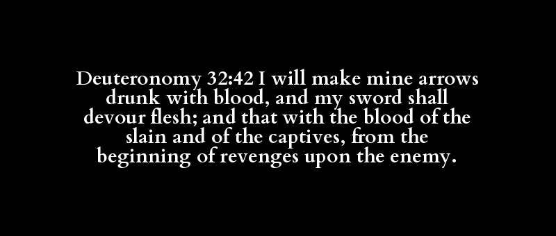 Deuteronomy 32:42 I will make mine arrows drunk with blood, and my sword shall devour flesh; and that with the blood of the slain and of the captives, from the beginning of revenges upon the enemy.