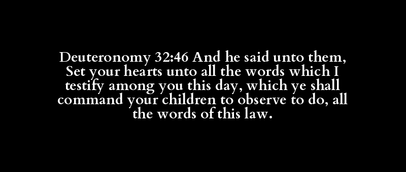 Deuteronomy 32:46 And he said unto them, Set your hearts unto all the words which I testify among you this day, which ye shall command your children to observe to do, all the words of this law.
