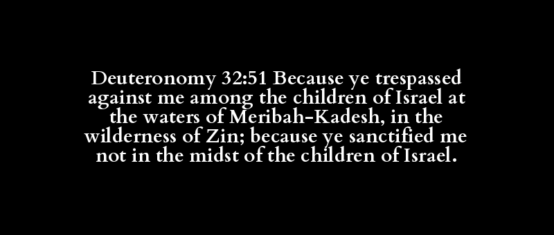 Deuteronomy 32:51 Because ye trespassed against me among the children of Israel at the waters of Meribah-Kadesh, in the wilderness of Zin; because ye sanctified me not in the midst of the children of Israel.
