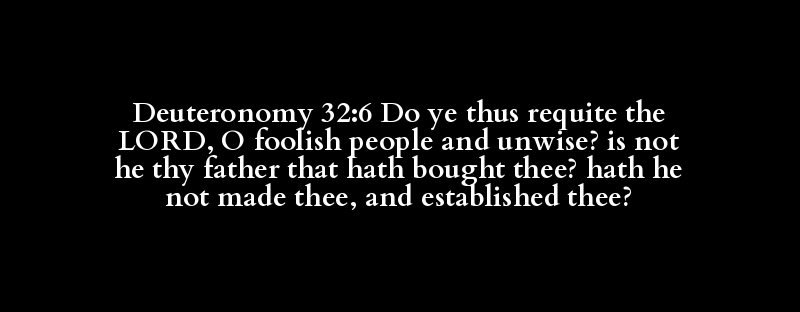 Deuteronomy 32:6 Do ye thus requite the LORD, O foolish people and unwise? is not he thy father that hath bought thee? hath he not made thee, and established thee?