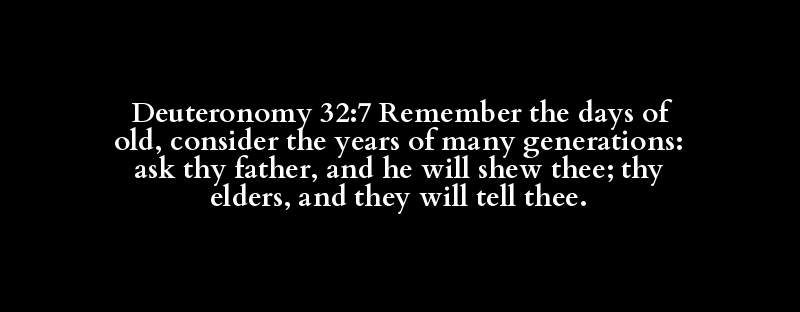Deuteronomy 32:7 Remember the days of old, consider the years of many generations: ask thy father, and he will shew thee; thy elders, and they will tell thee.
