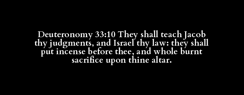 Deuteronomy 33:10 They shall teach Jacob thy judgments, and Israel thy law: they shall put incense before thee, and whole burnt sacrifice upon thine altar.