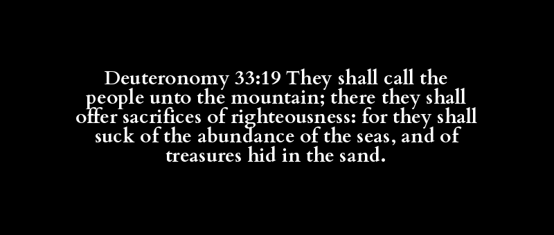 Deuteronomy 33:19 They shall call the people unto the mountain; there they shall offer sacrifices of righteousness: for they shall suck of the abundance of the seas, and of treasures hid in the sand.
