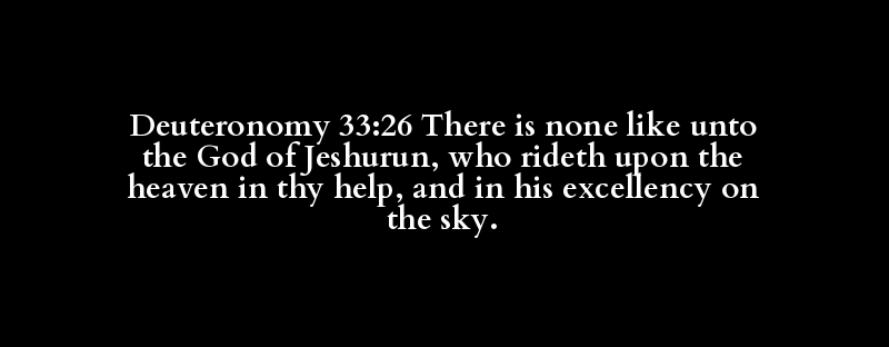 Deuteronomy 33:26 There is none like unto the God of Jeshurun, who rideth upon the heaven in thy help, and in his excellency on the sky.