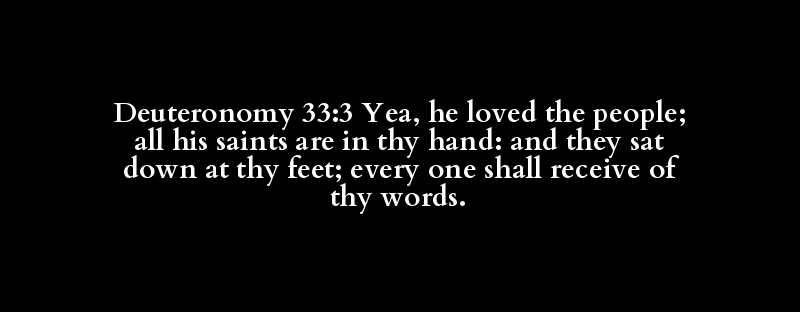 Deuteronomy 33:3 Yea, he loved the people; all his saints are in thy hand: and they sat down at thy feet; every one shall receive of thy words.