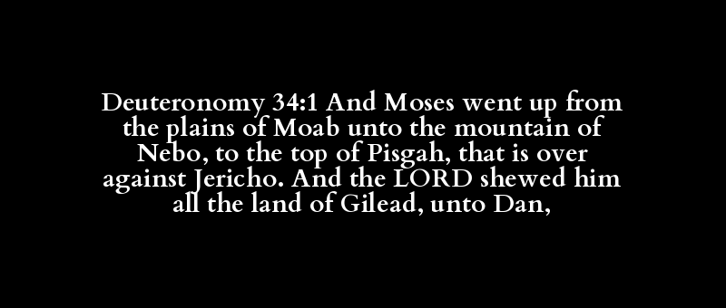 Deuteronomy 34:1 And Moses went up from the plains of Moab unto the mountain of Nebo, to the top of Pisgah, that is over against Jericho. And the LORD shewed him all the land of Gilead, unto Dan,