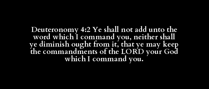 Deuteronomy 4:2 Ye shall not add unto the word which I command you, neither shall ye diminish ought from it, that ye may keep the commandments of the LORD your God which I command you.