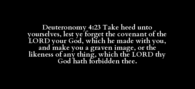 Deuteronomy 4:23 Take heed unto yourselves, lest ye forget the covenant of the LORD your God, which he made with you, and make you a graven image, or the likeness of any thing, which the LORD thy God hath forbidden thee.