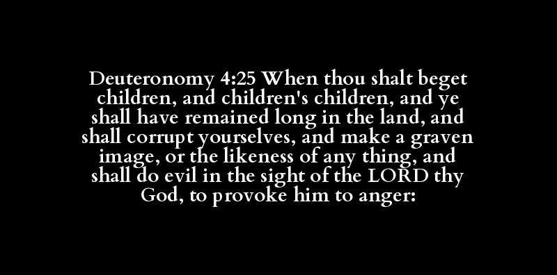 Deuteronomy 4:25 When thou shalt beget children, and children's children, and ye shall have remained long in the land, and shall corrupt yourselves, and make a graven image, or the likeness of any thing, and shall do evil in the sight of the LORD thy God, to provoke him to anger: