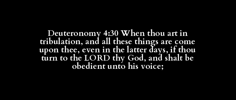 Deuteronomy 4:30 When thou art in tribulation, and all these things are come upon thee, even in the latter days, if thou turn to the LORD thy God, and shalt be obedient unto his voice;