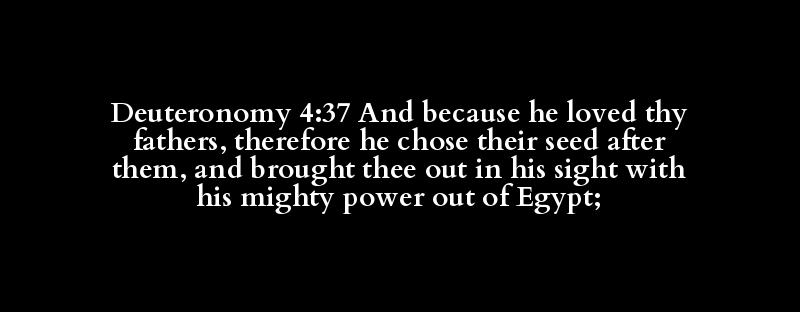 Deuteronomy 4:37 And because he loved thy fathers, therefore he chose their seed after them, and brought thee out in his sight with his mighty power out of Egypt;