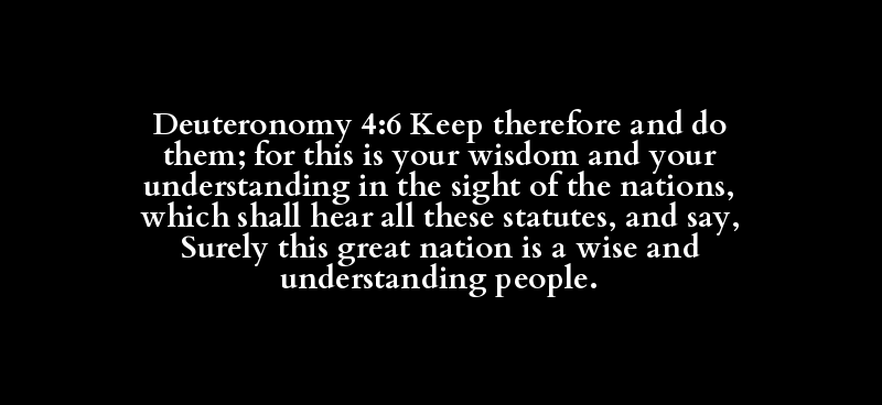 Deuteronomy 4:6 Keep therefore and do them; for this is your wisdom and your understanding in the sight of the nations, which shall hear all these statutes, and say, Surely this great nation is a wise and understanding people.