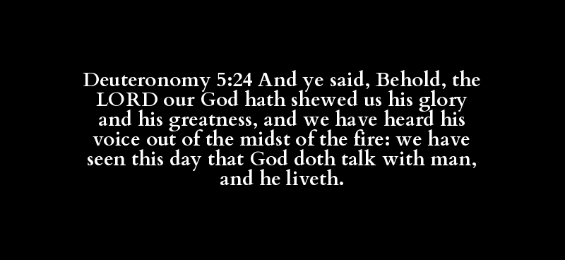 Deuteronomy 5:24 And ye said, Behold, the LORD our God hath shewed us his glory and his greatness, and we have heard his voice out of the midst of the fire: we have seen this day that God doth talk with man, and he liveth.