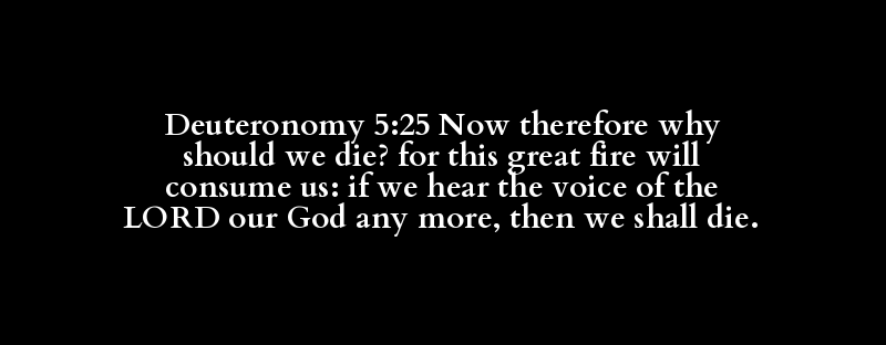 Deuteronomy 5:25 Now therefore why should we die? for this great fire will consume us: if we hear the voice of the LORD our God any more, then we shall die.