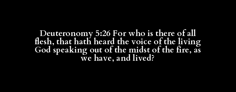 Deuteronomy 5:26 For who is there of all flesh, that hath heard the voice of the living God speaking out of the midst of the fire, as we have, and lived?